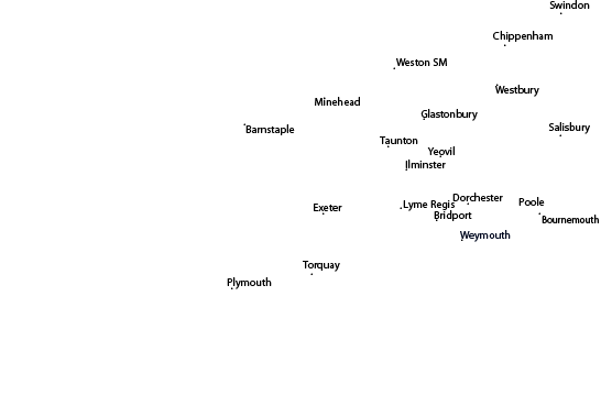 You can find a selection of venues in the south west and beyond by clicking on a county from the map below. You can also see the approximate position of some of the larger towns in our region or see our main radius of operation by clicking on the appropriate button below the map.